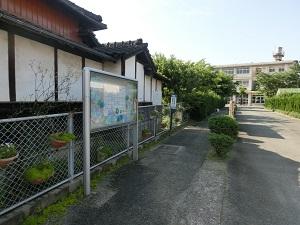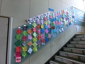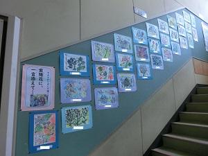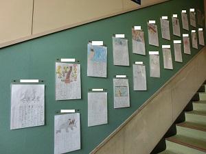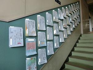 階段横の掲示板には、各学年の学習の足あとが掲示してあります。