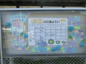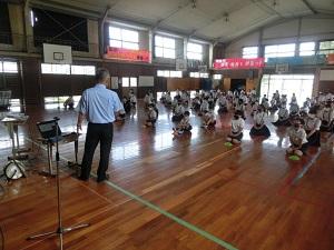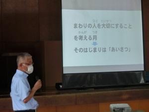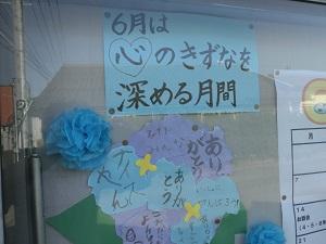 6月は「心の絆を深める月間」です。先週に引き続き、今日は、4~6年生を集めて集会を行いました。校長先生から、「周りの人を大切にする第1歩は、『あいさつ』」という話があり、みんな真剣に聞いていました。集会の最後には、みんなで、校歌も歌いました。