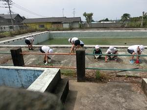 暑い日が続き、水泳の授業を心待ちにしている子どもも多いようです。新型コロナウイルス感染予防として「密」を避けるために、今日から金曜日まで、学年を分けてプール掃除を始めました。今日は、3年生と4年生がプール周りやプールサイドを掃除しました。3年生は、初めてするプール掃除に、最初は何をしたらいいのか?分からなかったようですが、仕事の多さにびっくりしながら頑張りました。4年生は、去年の経験を生かして、テキパキと仕事を進めていました。