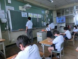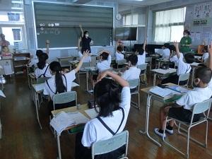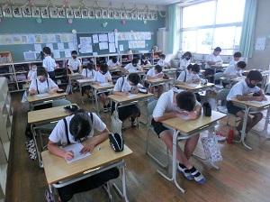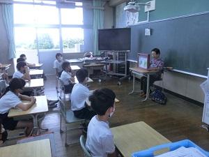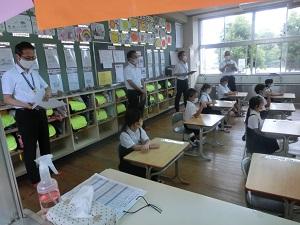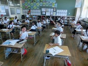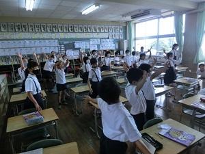新型コロナウイルス感染予防のため、体育館に全校児童が集まって行っていた児童集会も様変わりしています。今日は、初めての児童集会で、企画委員会と放送委員会が事前に録画したビデオを各教室で視聴する形で行いました。放送委員会の子どもたちから児童集会の紹介があったあと、教室でいすに座って、子どもたちは真剣に見ていました。最後には感想発表もあり、考えながら見ていたことが分かりました。