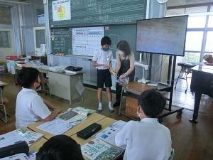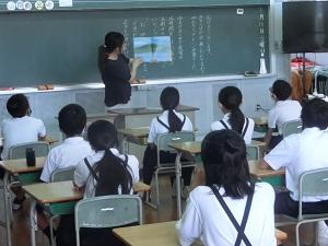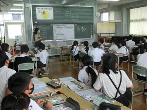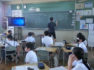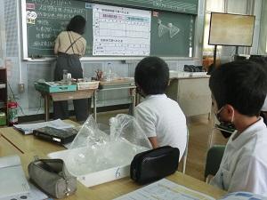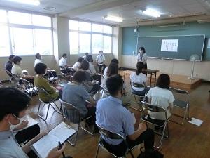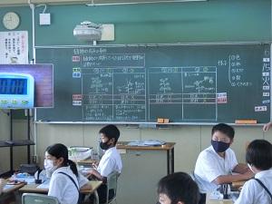 玉名市では、6つの中学校区毎の小学校と中学校が連携して児童生徒を育てる「小中一貫教育」に取り組んでいます。そこで、玉南中学校と八嘉小学校の先生方に授業を見ていただき、今年度の玉南中学校区の目標や実践事項などを、「学び・心・健康」の3つの点から話し合って決めました。