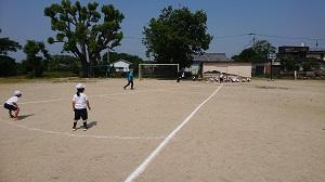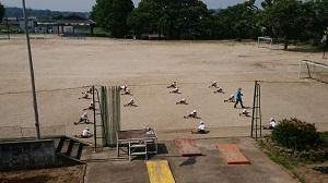 伊倉小学校では、新型コロナウイルス感染予防のために体力テストを学年毎に行っています。1年生の2時間目は体育。準備運動もバッチリして、ボール投げに挑戦しました。