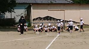 朝の登校後・2時間目後の15分休み・昼休みと、照りつける太陽の下で子どもたちは元気いっぱい運動場を走り回っています。