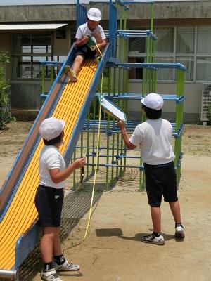 3年生は算数で、「長さ」の勉強をしています。今日は、巻き尺を使って、長いものや丸いもの等を実際にはかりました。