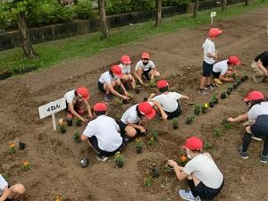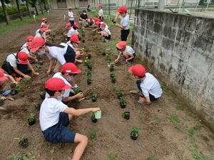 栽培委員会は、種から育てたマリーゴールドやサルビア、千日紅、ケイトウを東門付近の花だんに植え付けました。学級花だんとともに東門の花だんも、花いっぱいになるのが楽しみです。栽培委員のみなさん、ありがとうございます。