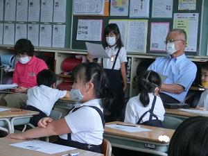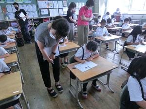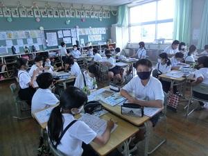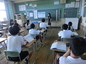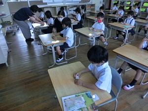 5時間目、先生方に見てもらい、道徳の勉強をしました。「およげない りすさん」というお話を使って、友だちと仲良くすること、助け合うことの勉強をしました。「先生方に見てもらう」ということで、子どもたちも緊張気味でしたが、しっかり考えて、たくさん発表しました。2年生は、これから、もっと仲良くなって、楽しいクラスになりそうです。