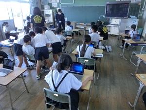 2年生は、2・3時間目にタブレットの使い方の勉強をしました。一人一台のタブレットで、写真を撮ったり絵を描いたり迷路遊びをしたりしましたが、一つのことができると感動し、つい隣の人と話すことに・・・・。その結果、次にすることを聞き逃すこともあり、どうすればいいのか?分からなくなることもありました。「今は、しっかり聞くとき」と注意をすることも度々でしたが、子どもたちは満足そうでした。
