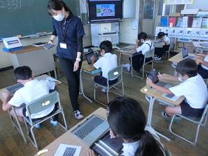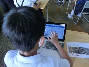 3年生は、タブレットの使い方の勉強をしました。今日は、先生が出したシートには、ドラえもんの絵を描くようにかいてありました。テレビで見ているドラえもんも、いざ描くとなると、思い浮かばない子どももいましたが、みんなの顔は楽しそうでした。