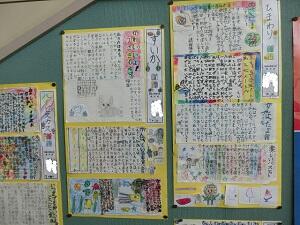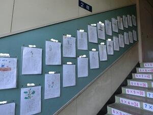 夏休みまであと2日、教室の中の作品も持ち帰りのために少なくなってきました。ろうかの掲示物も少なくなっていますが、1・2・4年生の作品が掲示してあったので紹介します。