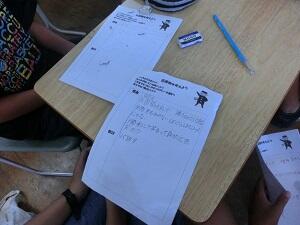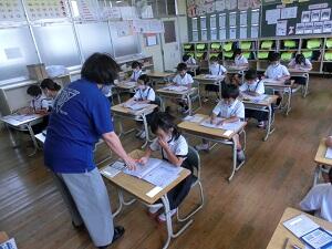 2年生は、道徳の時間に、熊本の心(郷土学習資料)の中から、「祭りにこめられたおもい」というお話を使って勉強しました。伊倉にも、南北両八幡宮のお祭りがありますが、子どもたちの記憶には、やはり、「出店」のことが一番でした。しかし、八代妙見祭のビデオ(熊本の心)を見た後には、祭りに込められた地域の人たちの思いが、少しは分かってくれたようです。