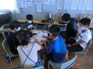 伊倉小学校でも、9月26日(日)の運動会に向けて、5・6年生の応援団が集まり、準備を進めています。まずは、応援歌をどうするか?みんなで意見を出し合っています。