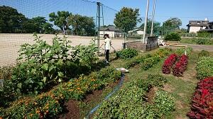 そのような中でも、伊倉小学校の花だん・生活科園・理科園の花ややさいは、元気に育っています。それも、4~6年生の子どもたちが水かけと草取りをがんばってくれているからです。今日も、朝早くからがんばってくれました。
