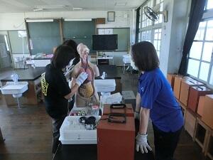 午前中に、授業の進め方やタブレット操作の研修を行い、午後からは、体育館倉庫や理科室、家庭科室の整理を全職員で行いました。理科室には、昭和40年代の器具等もたくさん残っていましたが、一気に片づけてしまいました。