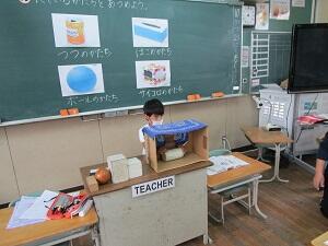1年生の算数は、新しい単元「かたちあそび」に入りました。子どもたちは、家から持ってきた箱や空き缶などを使って、タワーやキリン・滑り台などを、工夫して作りました。授業中の教室は、楽しそうな子どもたちの声でいっぱいでした。