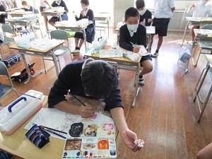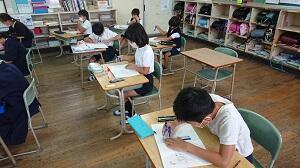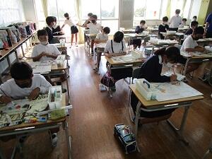 6年生は、来週の〆切に向けて、読書感想画の仕上げを頑張っています。