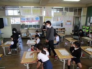 おおくらの森幼稚園の先生が、研修で1年生の授業参観に来られました。
