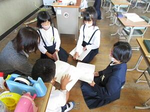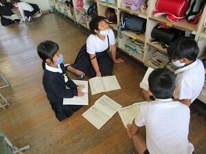3年生は、国語の時間に、1年生が喜びそうな本の読み聞かせをする計画を話し合っています。1年生が聞いて楽しくなるような本を選んで、1年生が本を好きになるような読み聞かせにするために、グループで話し合いをしています。