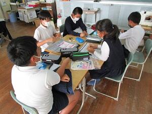 6年生は、家庭科の授業でナップサックを作っています。ミシンを使って、上手に縫っています。11月の修学旅行に持って行けるといいですね。