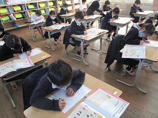 学年末を迎え、全学年で「学力充実の時間」として、プリント等の問題にチャレンジしました。担任外の先生方も〇つけのために参加し、問題をどんどん解きました。所々に子どもたちが引っかかるような問題もあり、間違えたときには悔しがっていました。