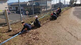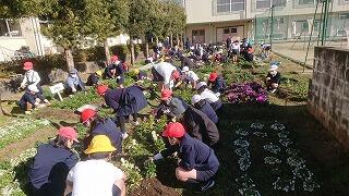 昼休み後の活動の時間に、全校児童で、学級園・学校園の草取りと校内の落ち葉拾いをしました。昨日の強風で落ち葉が多かったり、冬休み後で草もかなり大きくなっていました。縦割り班で行ったので、上級生を見ながら下の学年の子どもたちも頑張っていました。今後も、月1~2回、みんなで頑張ります。