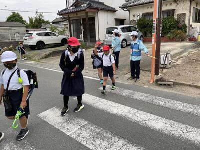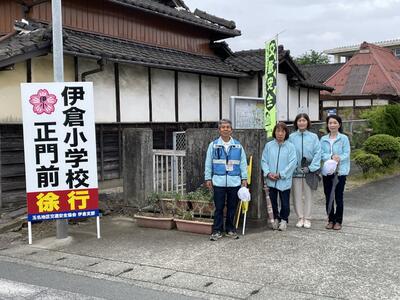 いま児童福祉週間(5月5日~5月11日)です。これに合わせて、今朝は正門前や東門前で玉名市第3民生委員児童委員協議会のみなさんにも見守られて登校した伊倉小の児童です。写真は横断時にお礼を言っている児童、その後正門前で整列していただいた委員のみなさんです。ありがとうございました。地域社会の宝である子どもたちが、豊かな愛情に包まれながら夢と希望を持って未来の担い手としてたくましく育っていけるような環境・社会をつくっていきたいものです。今後もよろしくお願いします。