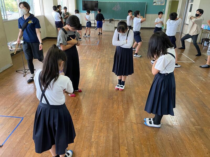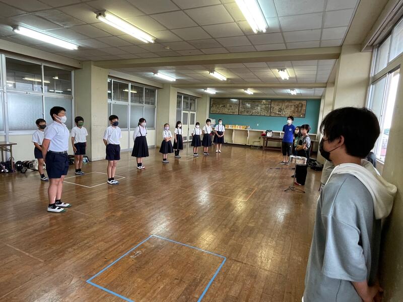 難しい動きに戸惑う様子もありましたが、直接中学生に教えてもらい、うれしそうに練習していました。
