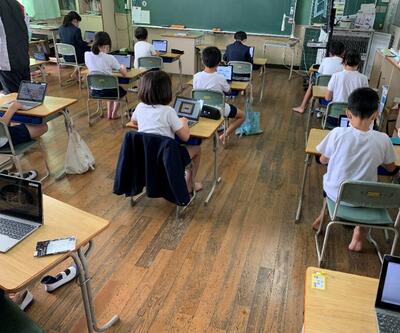 心臓検診の待ち時間に、4年生がタブレットを使っていました。タブレットで何をしているのかなと見てみると、タイピングの練習をしていました。「寿司打」や「プレイグラムタイピング」など様々なタイピング用のサイトを使って、タイピングの技術を磨いていました。