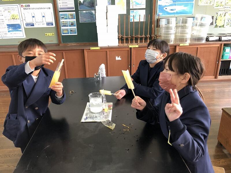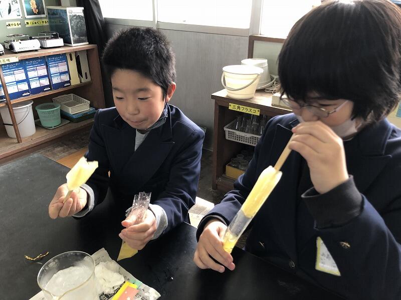 4年生は、理科の学習で「すがたを変える水」を学習後、アイスキャンディー作りをしました。