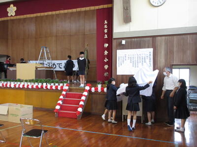 その後、4・5年生が6年生への感謝の気持ちを込めて明日の卒業式の準備に取り組んでくれました。