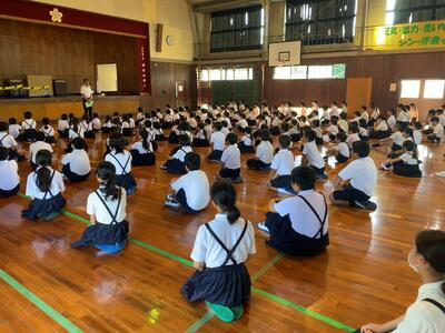 ↑休業明けすぐの集会ですが、話を聞く態度が素晴らしかったです。