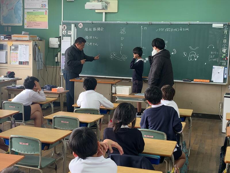 本日の午後、4年生は福祉体験学習の一環で聴覚障がいのある方に講話をしていただきました。耳が聞こえにくいことにより生きてきた中で苦労したこと、補聴器に関する話、簡単な手話など貴重なお話をたくさん聞くことができました。