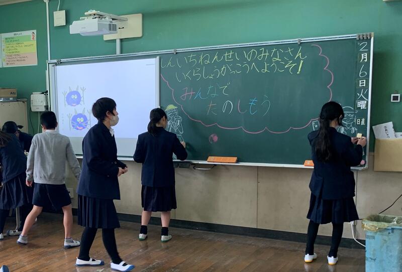 4月から1年生になる新入生の体験入学がありました。主に5年生が中心となって新入生のお世話に取り組みました。学校の中を案内するチームと、教室でお楽しみ会を進行するおもてなしチームに分かれて、新入生に楽しんでもらえるように考えて行動していました。