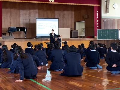 流感拡大防止の観点から当初の予定(1月25日)より再延期されていた給食集会が今日の4校時に行われました。