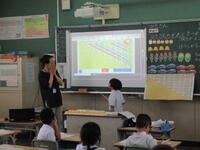 懐かしい先生方のお顔を見て、子どもたちはにこにこ。手を振ったり、振り返ったりしながら、園の先生方のお顔を確かめていました。でも、さすが1年生。これまで学習した算数のたし算、ひき算のカードを見ながら、気づいたことをしっかりと発表しました。