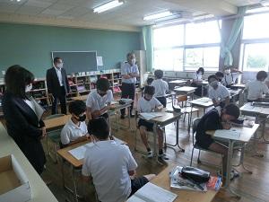 午前中、玉南中学校区小中学校の校長先生方が来られ、各教室の授業の様子を見て行かれました。子どもたちは、いつも通り、授業に集中していました。