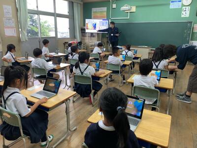 梅雨に入り、ジメジメとした日々が続く今日この頃。1年生は今年度初めてのタブレット学習に取り組みました。ICT支援員さんに説明してもらいながら、タブレットの起動の仕方、ログインの仕方、タブレットを使う上でのルールなどを学びました。