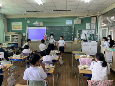 給食の時間には伊倉小みんなで作った千羽鶴の披露をしました。みんなの思いを長崎に届けましょう。