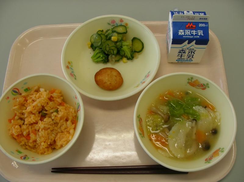 5月12日(水)の給食(チキンライス 牛乳 春キャベツのスープ チキンナゲット サラ玉サラダ) 投稿日時 : 2021/05/12 学校サイト管理者 0 {{options.likeCount}} {{options.likeCount}} {{options.unlikeCount}} {{options.unlikeCount}}