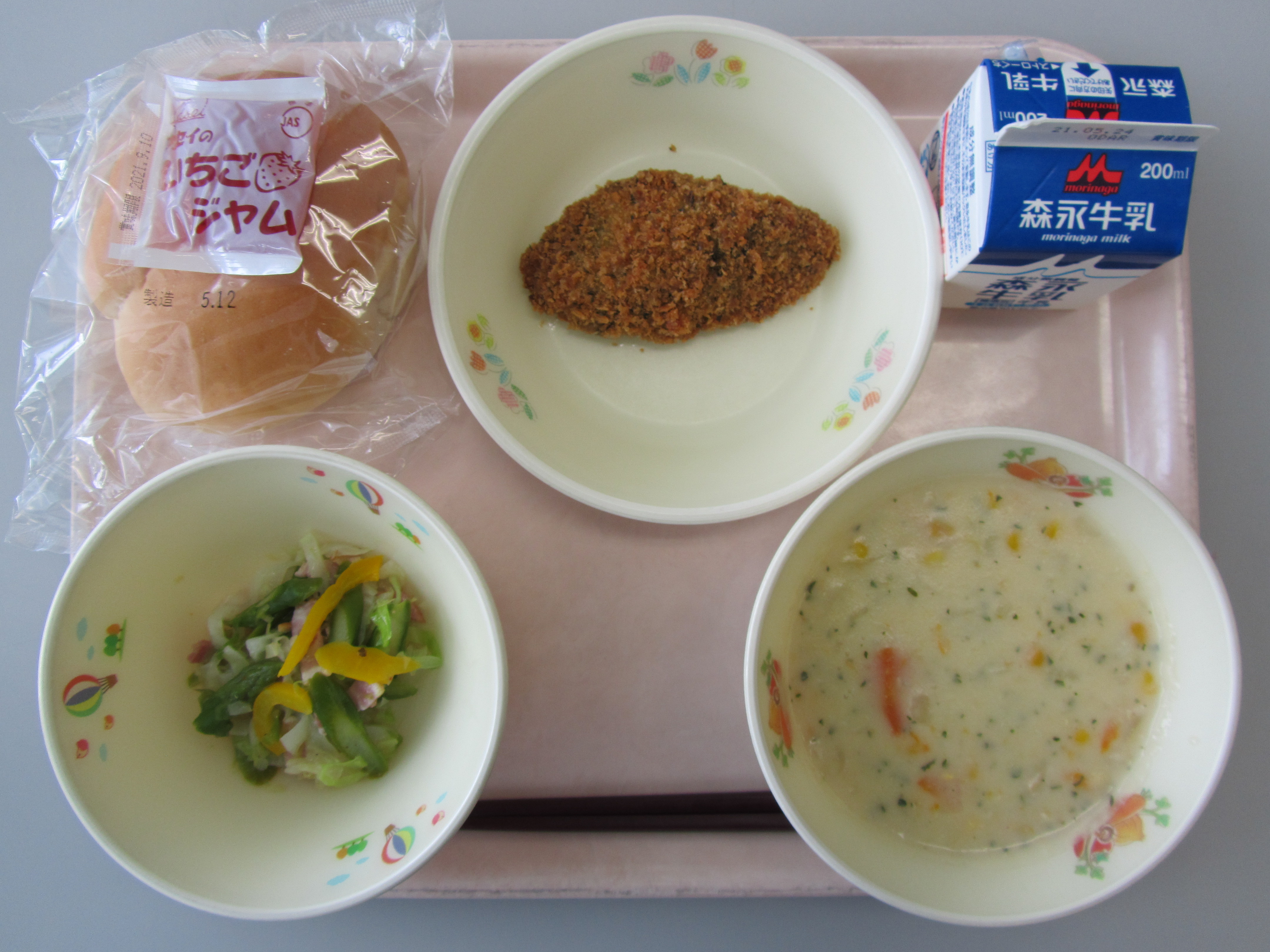 5月13日(木)の給食(丸パン 牛乳 米粉のコーンポタージュ アジフライ イタリアンサラタ) 投稿日時 : 2021/05/13 学校サイト管理者 0 {{options.likeCount}} {{options.likeCount}} {{options.unlikeCount}} {{options.unlikeCount}}