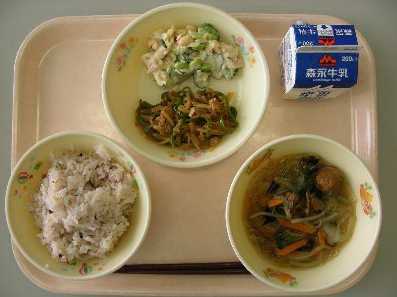 5月14日(金)の給食(雑穀ご飯 春雨汁 チンジャオロース 豆まめサラダ) 投稿日時 : 2021/05/14 学校サイト管理者 0 {{options.likeCount}} {{options.likeCount}} {{options.unlikeCount}} {{options.unlikeCount}}