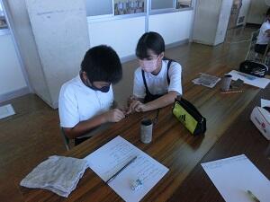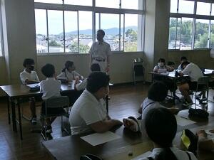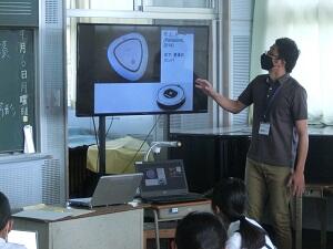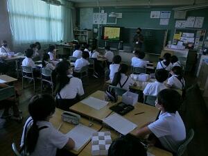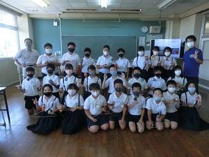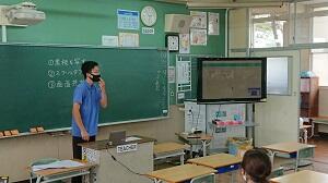 熊本大学教育学部の引地先生に来ていただき、5年生の子どもたちに出前授業「環境に配慮したものづくり教室」を開催していただきました。引地先生から、環境問題(昨年の人吉地方で起こった水害による被害や地球温暖化の問題)について、映像やプレゼンテーションを使ってお話をされました。5年生の子どもたちは、9月3日(金)に熊本県環境センターとのオンラインで、環境について考える授業をしていたので、これから、自分たちに何ができるのか?これからの生活の中でどうしなければいけないか?等を考えながら、真剣に聞いていました。