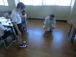 その後、空き缶を使った排気ガスを出さないスターリングエンジンの制作をしました。ピストンになるスチールウールをまるめて大きさを調整したり、シリンダーになる空き缶を磨いたり、友達と協力しながら制作しました。