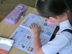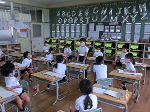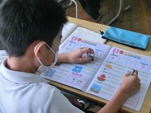 3年生は、ローマ字の練習をしています。子どもたちは、4本線の中に書くのは難しそうですが、一文字ずつ丁寧に書いていました。「S」や「N」等は、正しい書き順で書かないと鏡文字になってしまうので、気をつけましょう。