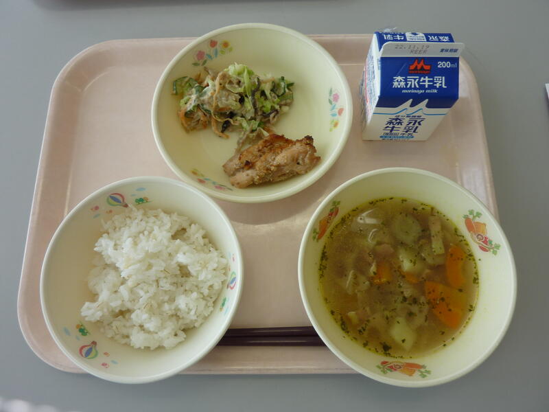 11月8日(火)の給食(麦ご飯 牛乳 根菜スープ 鶏肉の塩麹ごま焼き かみんこサラダ) 投稿日時 : 2022/11/08 学校サイト管理者 0 {{options.likeCount}} {{options.likeCount}} {{options.unlikeCount}} {{options.unlikeCount}}