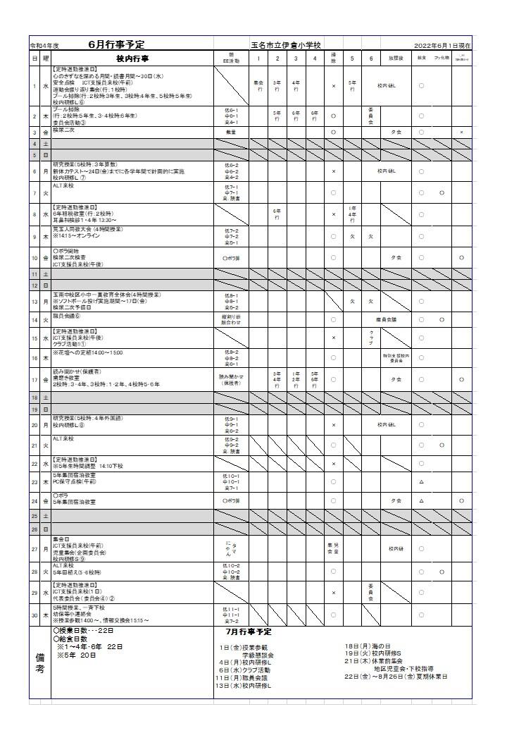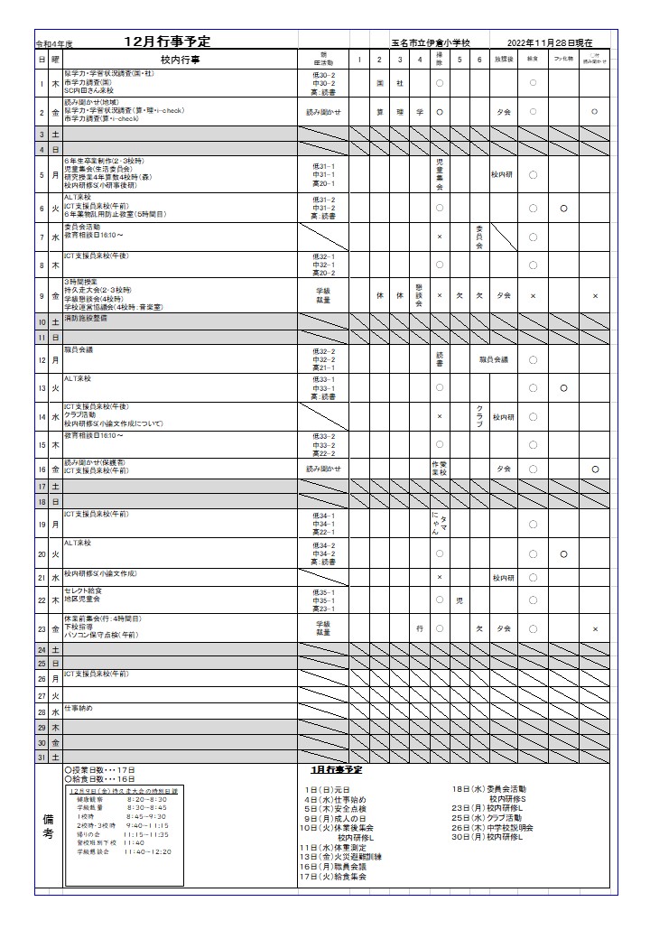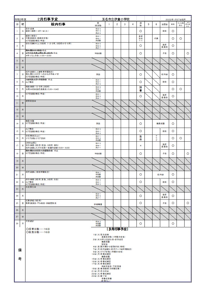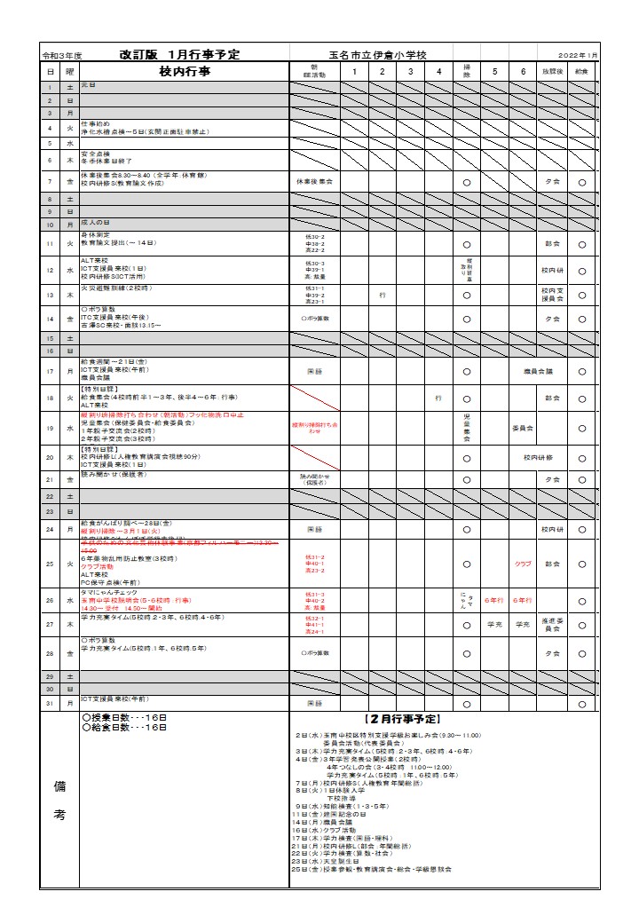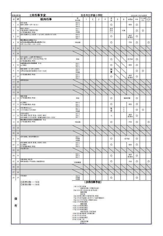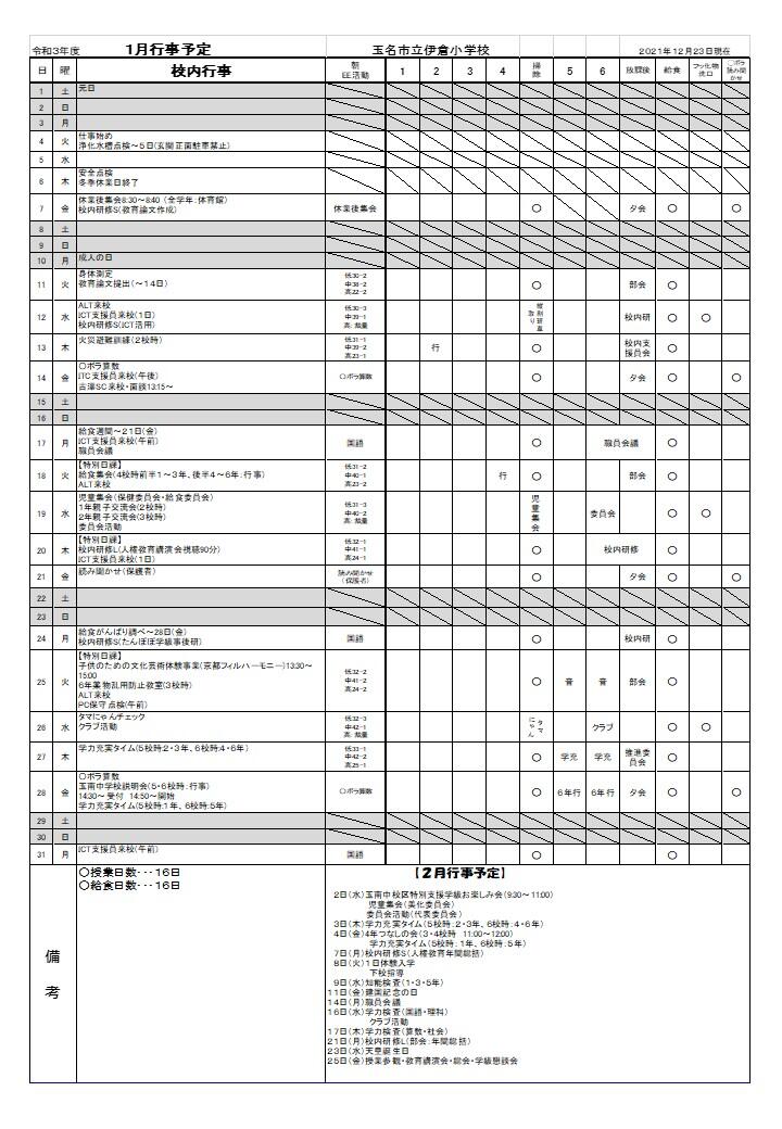 なお、25日(火)は、全学年とも5時間授業になりましたので、下校時刻は15時5分です。