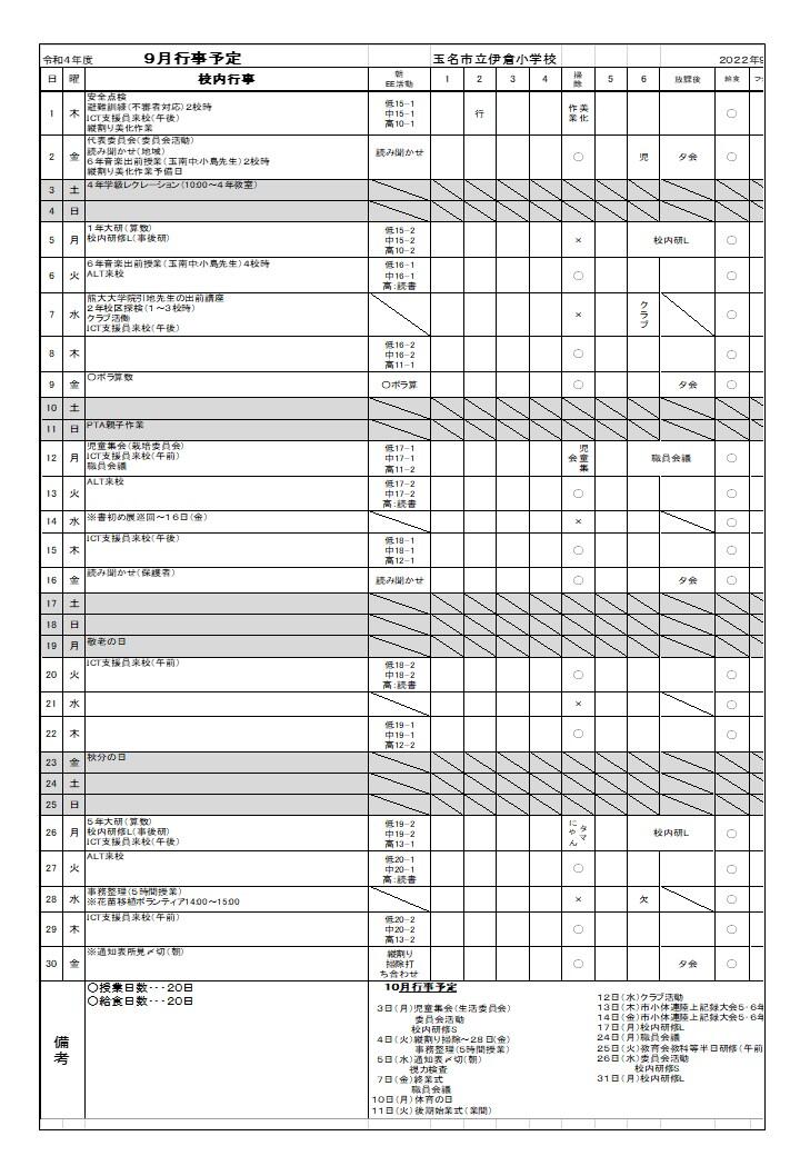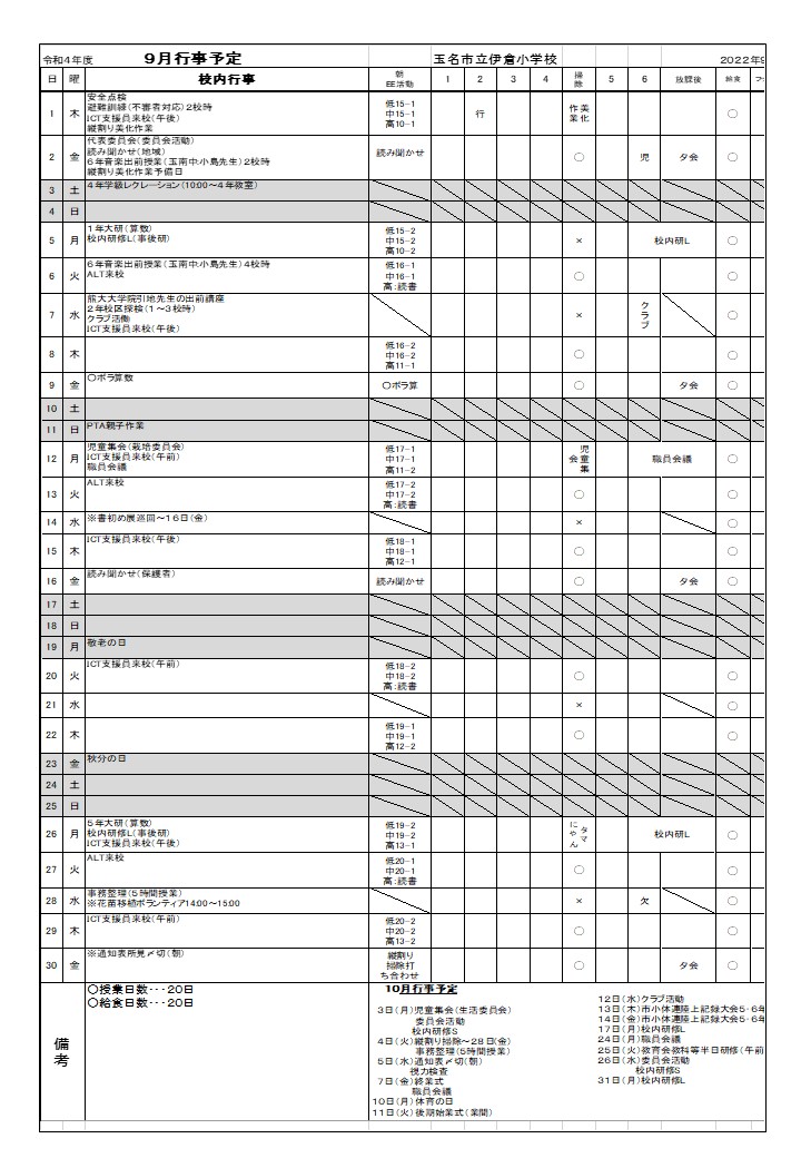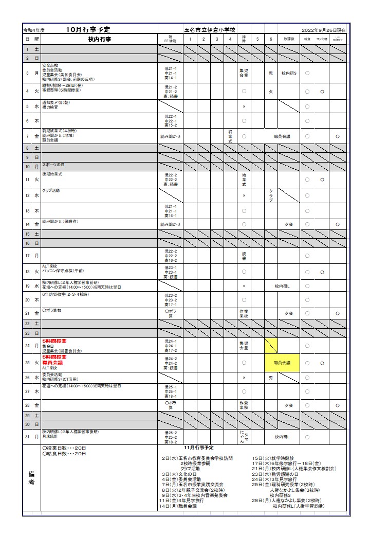 10月の行事予定をお知らせしていましたが、10月24日(月)・25日(火)に変更がありましたので、再度、「【改定版】10月行事予定」をお知らせします。