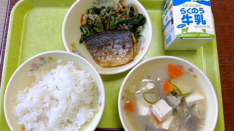 今日の献立は、麦ごはん、さばのカレー焼き、ほうれん草アーモンド和え、さつま汁でした。受験応援食2日目、今日の応援食材はさばとアーモンドです。温かい汁ものも体温が上がってやる気アップにつながります。