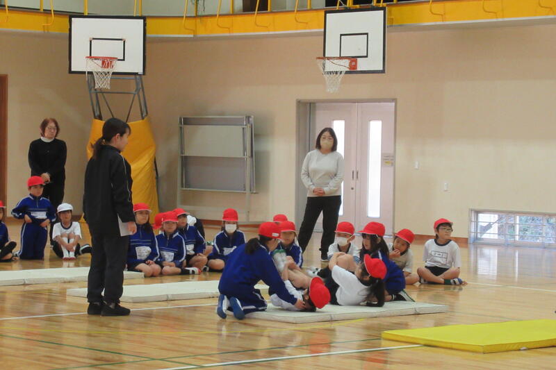 「さん さん ななびょ~うし!!」・・・1年生も、見よう見まねで取り組んでいました。