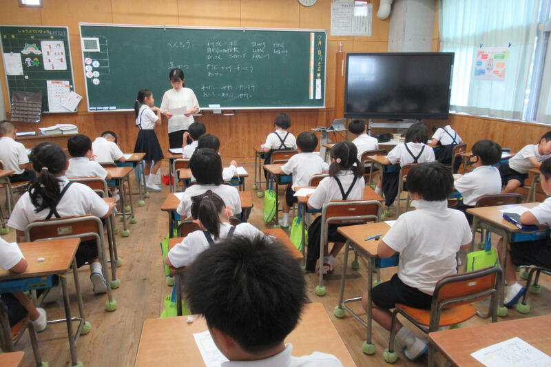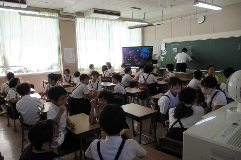 宿題を提出したり、夏休みの思い出を話したり、とても楽しそうな授業風景でした。