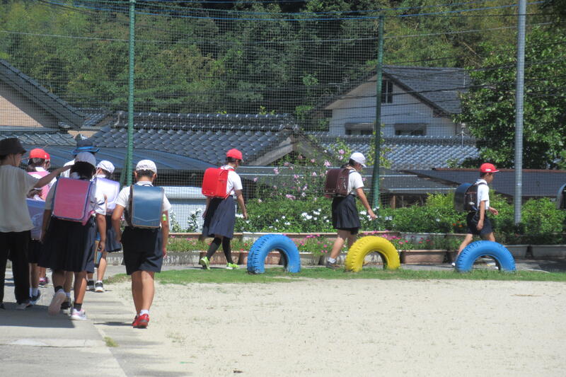 最後に、1年生は、手を振って年長さんたちを見送りました。